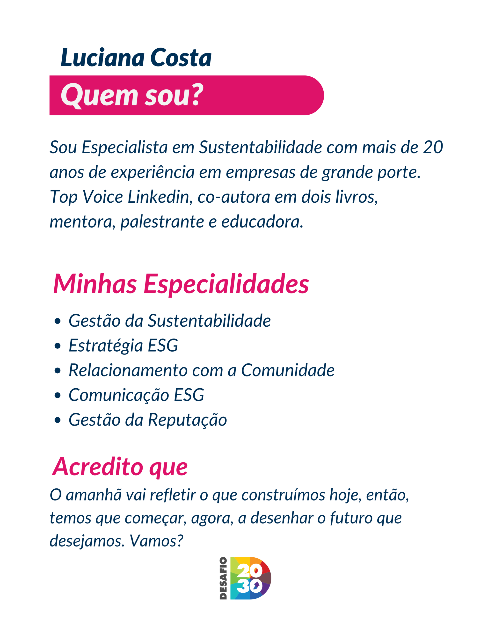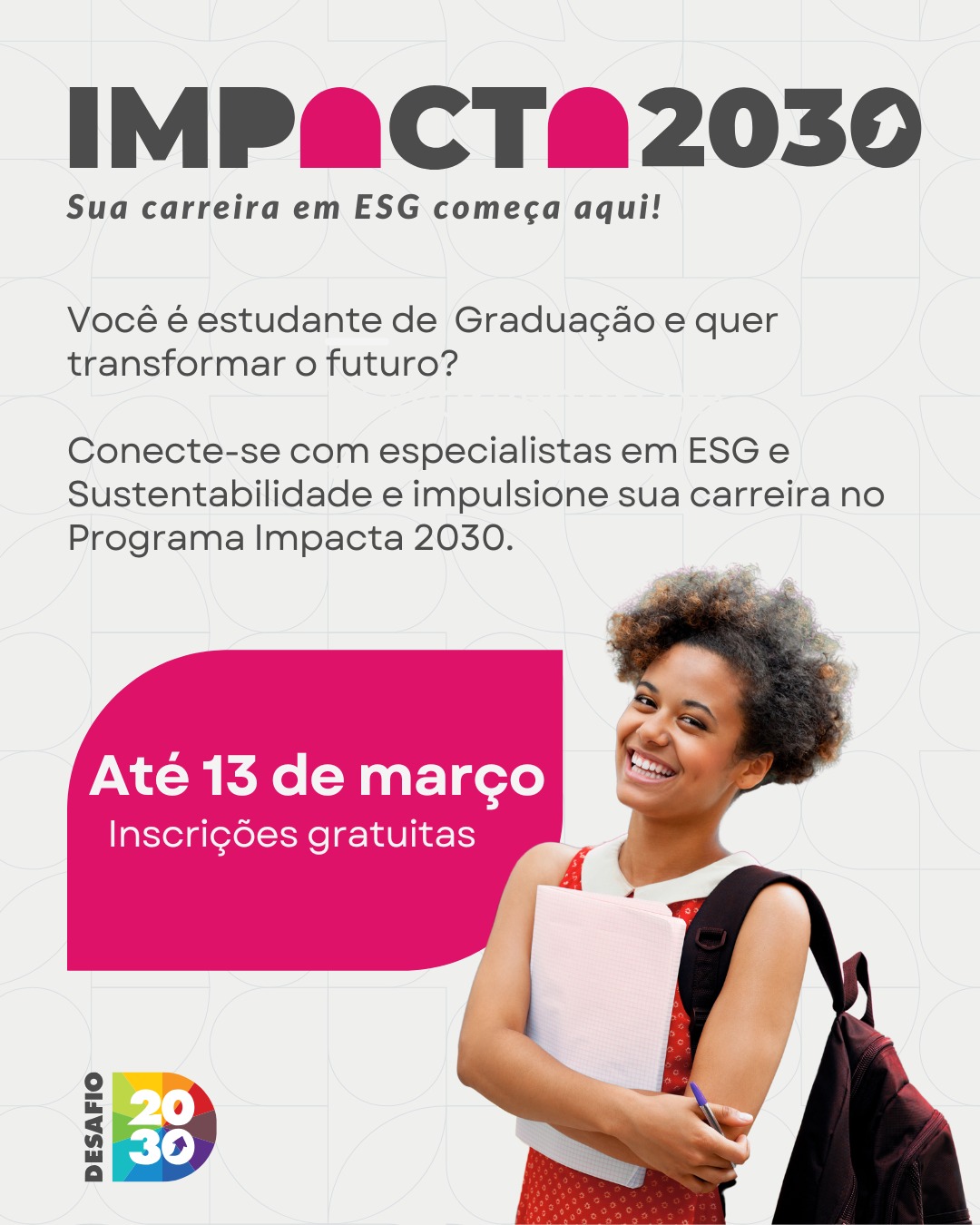 Faço parte desse movimento desde o início e, em 2026, lançamos uma mentoria gratuita para estudantes universitários com foco em preparar os novos profissionais para atuação nas áreas de sustentabilidade e ESG, o IMPACTA 2030.
